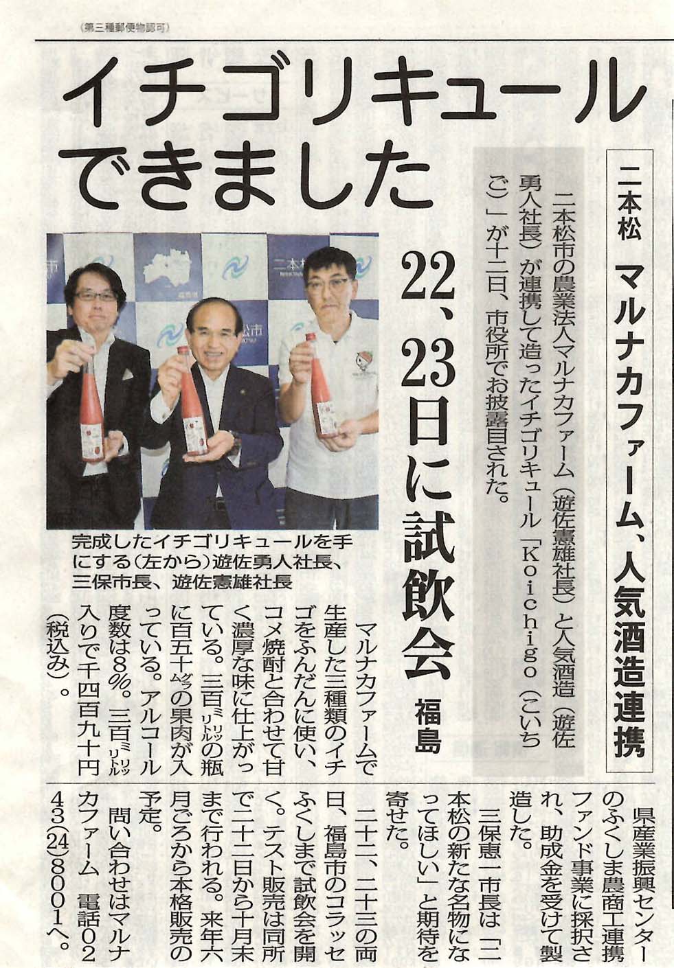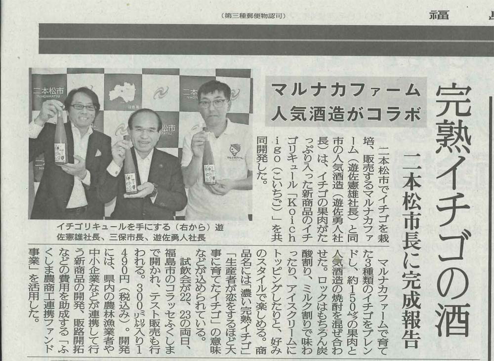 9月13日いちごリキュールKoichigoの完成報告の取材をしていただき、新聞に掲載いただきました。