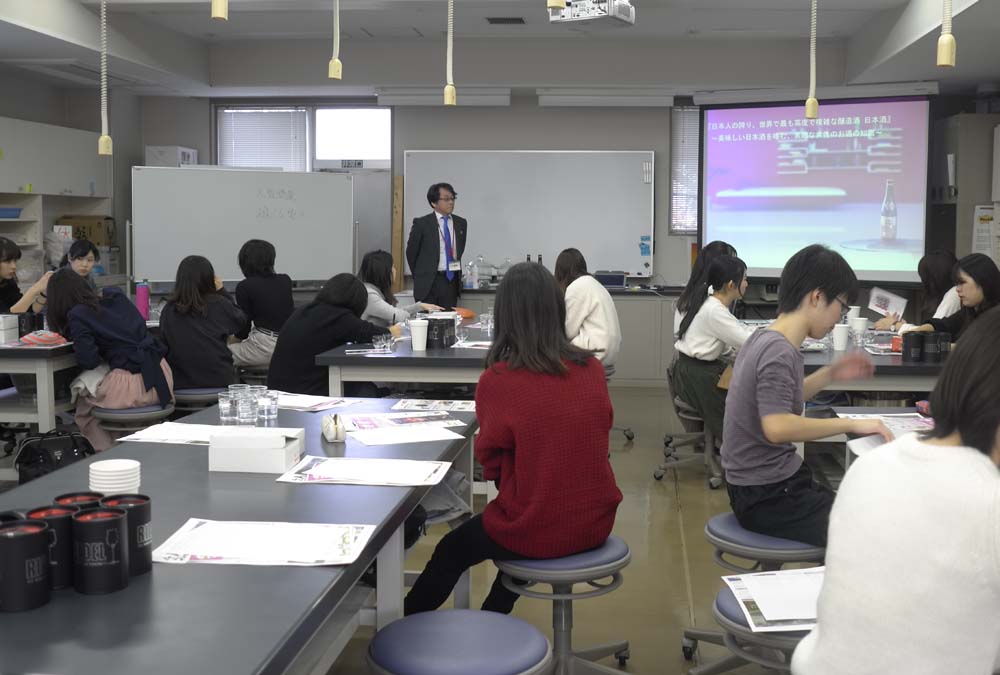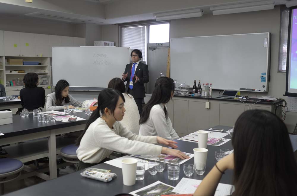 7日は今年も学習院女子大学の日本文化科で日本酒の講義をしてきました。 20歳になってお酒が飲めるようになった時、本当に美味しい日本酒に出会っていたら、その後の人生で飲酒の行動がまったく変わっていたと思う人は少なくないはず。 そんな自分自身の反省もあり、年に何度かこのような活動を行うようにしています。 当日は、日本酒の造り方、歴史、他の酒類との違い、実際に大吟醸、純米吟醸、スパークリング日本酒、長期熟成酒、の試飲、同じお酒の冷やとお燗の飲み比べ、の体験をしていただき、日本酒の知識と経験を深めていただきました 。