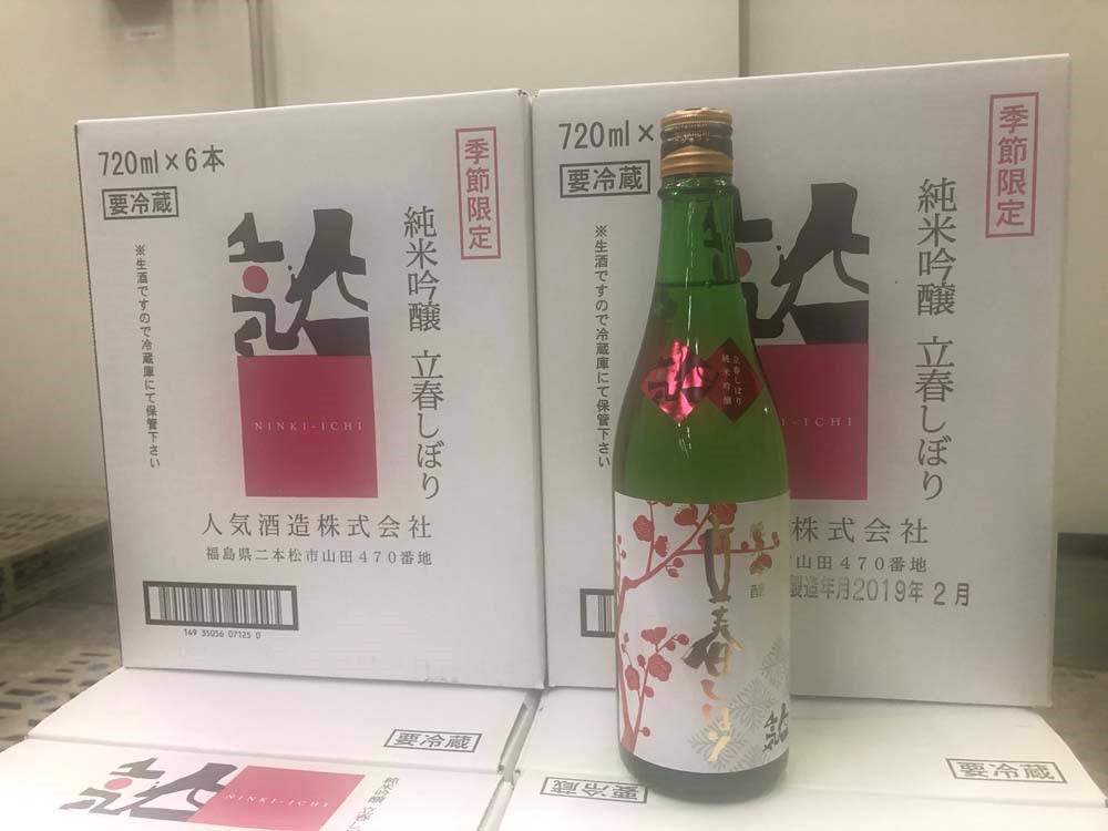 例年通り今年も2月4日立春の朝に絞った純米吟醸『立春しぼり』の出荷をしました。 今年は経験したことが無いほど温かい立春で、気温も10度近くまで上がり立春とは思えない陽気でした。 暖かい地方では梅の花が咲き始め、立春の前日は節分、立春から数えて88日目を八十八夜、初めて吹く南よりの強風を春一番と呼びます。 風水を始めとする占いでは、立春を以て年が変わります。 節分の豆撒きや恵方巻といった習慣も、立春を年初として、新しい年の幸運を願って行われます。 立春しぼりは、大寒から立春までの一年のうちで最も寒い季節に仕込まれ、立春当日の朝に搾った酒で、春を迎える縁起の酒です。 今年の恵方(東北東)を向いて飲めば開運間違いなし!