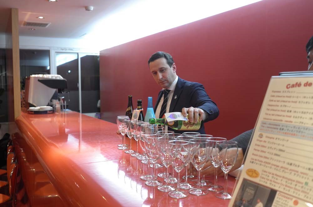 21日はパリでの日本酒コンテスト、Kura Masterの審査員が来日して、Sake in France nowフランス人トップソムリエが語る「日本酒の魅力、フロマージュとの相性」〜Kura Master2018受賞酒と立食フレンチビュッフェを味わいます〜が飯田橋のアンスティチュ・フランセ東京で開催されました。 今年の出品酒募集について記者発表を行いました(写真1枚目) マスコミ向けに2018年の受賞酒をお披露目(写真2枚目) 施設内の「ラ・ブラスリー」にて立食で受賞酒とフレンチビュッフェを楽しみました(写真3枚目) 審査委員長のグザビエ・チュイザ氏と(写真4枚目)