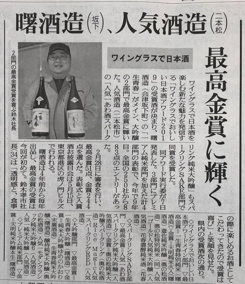 人気一あわ酒スパークリング純米大吟醸が最高金賞!