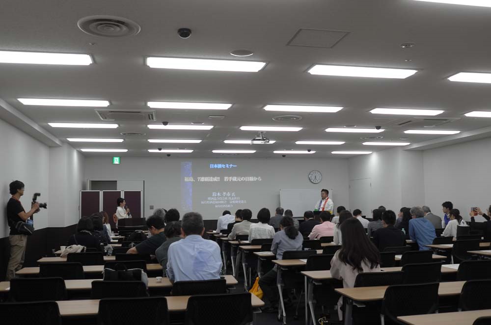 6月14日(金)、日本酒フェアのプレイベントとして在日外国人等の招待客を対象に、日本酒セミナー・公開きき酒体験・47都道府県の日本酒の試飲会を開催いたしました。 浦上満氏の北斎の講演、酒類総合研究所の後藤先生が英語の日本酒セミナーを行い、、今年も多くの在外国人の皆様に参加いただきました。