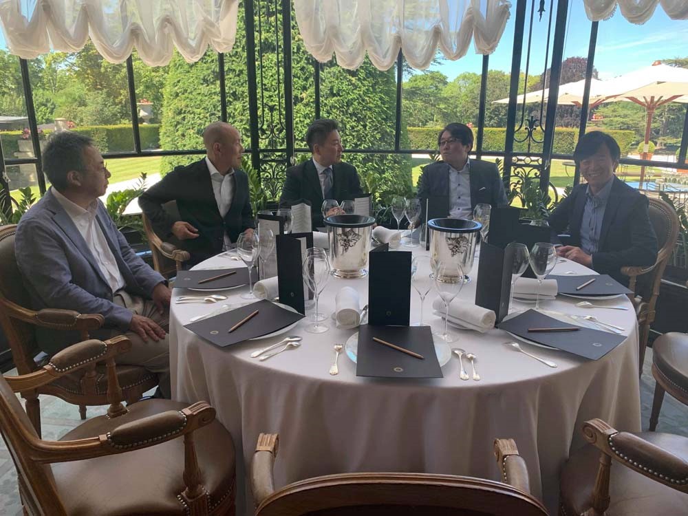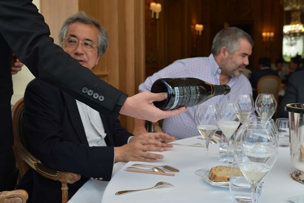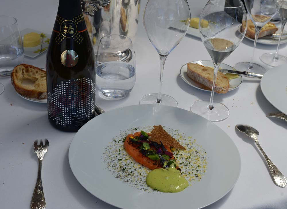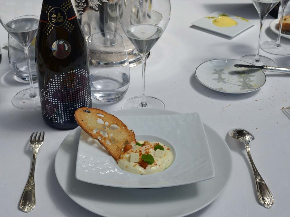 午後からは、シャンパーニュのミシュラン二つ星フレンチ「レクレイエール」でのフィリップ・ミル シェフ創作のawa酒とのペアリングコースを体験しました。 現地のシャンパンメゾンのオーナーや生産者、販売関係者も同席して、awa酒がこれ程までにフレンチとの相性が素晴らしいことを、フィリップ・ジャメス氏の解説と共に確認させていただきました。