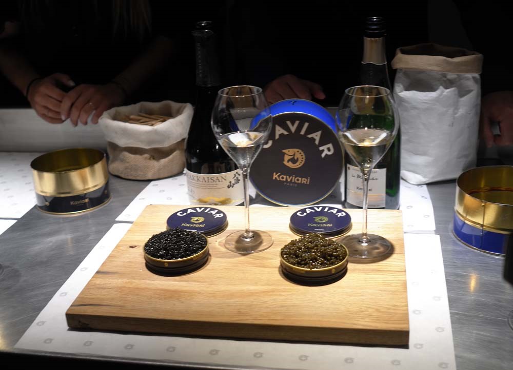 10日はシャングリラホテルの日本人ソムリエ佐藤克敏氏も参加いただき、パリのKaviariでawa酒とのペアリングを体験させていただきました。 チョウザメの捕獲は1998年からルールが厳格化され、2008年には世界的に禁止となり、現在では養殖のみなのだそうです。 こちらのお店ではフランス、中国、イタリア、ブルガリア、イランで自社基準で養殖し輸入していて、驚いたのは現在最も高品質なのは中国産であったこと、価格も高価で味わいも最も良いものでした。 今回はシャンパンとawa酒のどちらが合うかを試させていただきました、キャビア特有の塩味がawa酒の甘みにマッチして、ペアリングした方がさらに美味しく感じました。 魚卵+塩味+日本酒は最強なので、ここだけはシャンンパンよりも良かったと思います。